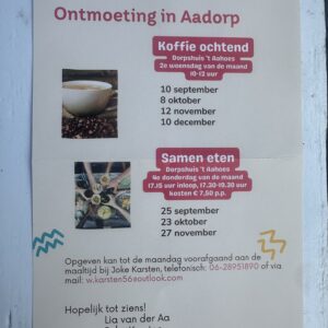 Het dorpshuis is het huis van de Aadorpers voor (sport) evenementen, vergaderingen en bijeenkomsten.